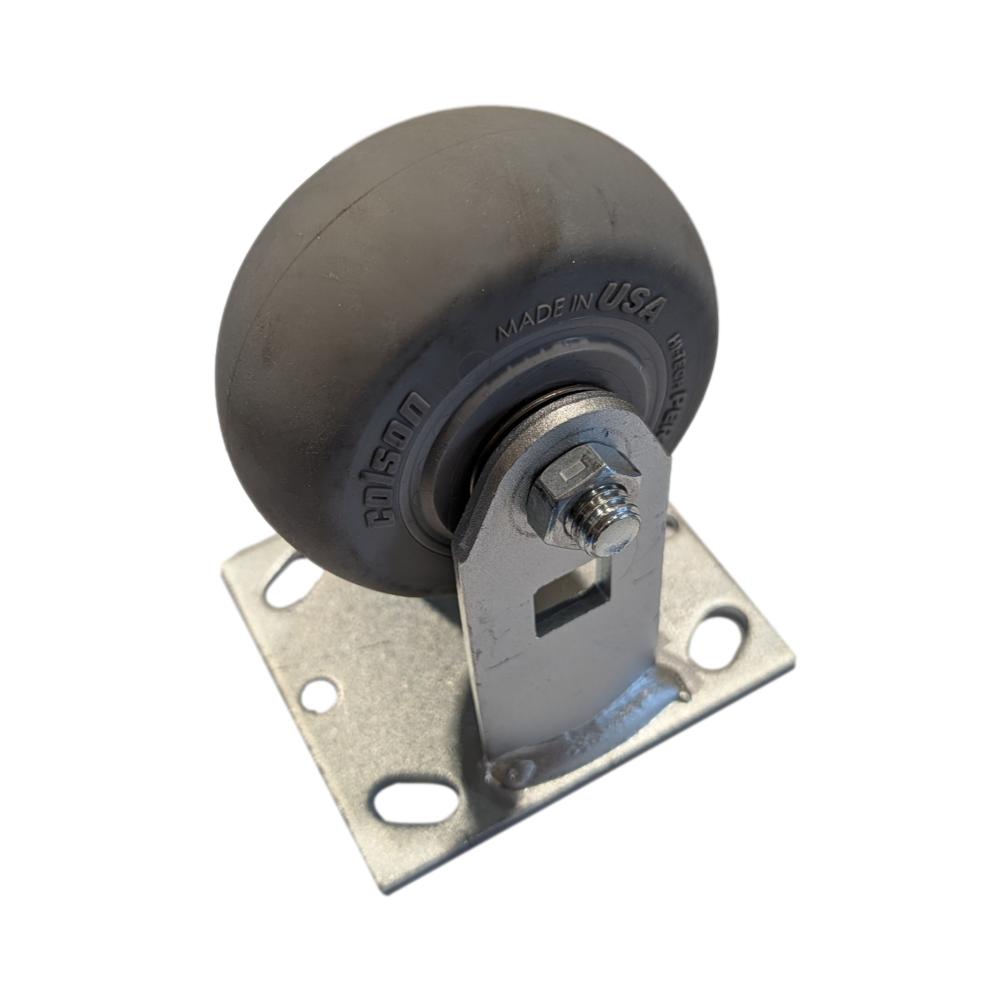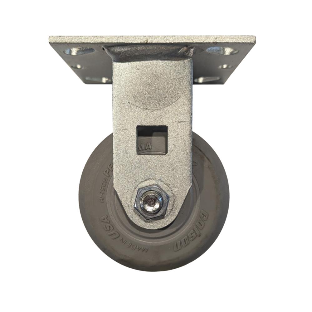 4" x 2" Thermoplastic Rubber wheel (Non-marking, smooth ride, self healing tread), Rigid mounting plate dimensions 4" x 4-1/2", and overall height of 5-1/2". 1/2" sealed bearing. Medium Duty
