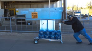 The power drive operates in both 2-wheel and 4-wheel modes. This hand truck comes complete with a charger and rechargeable battery module, with spare battery modules available for extended usage. The 10" full pneumatic tires are perfect for both smooth and rough terrains, reducing operator strain and increasing productivity. The battery module plugs directly into the drive unit, eliminating the need for attaching cables. For high usage, the spare battery module (part #220655) includes two batteries and a case.