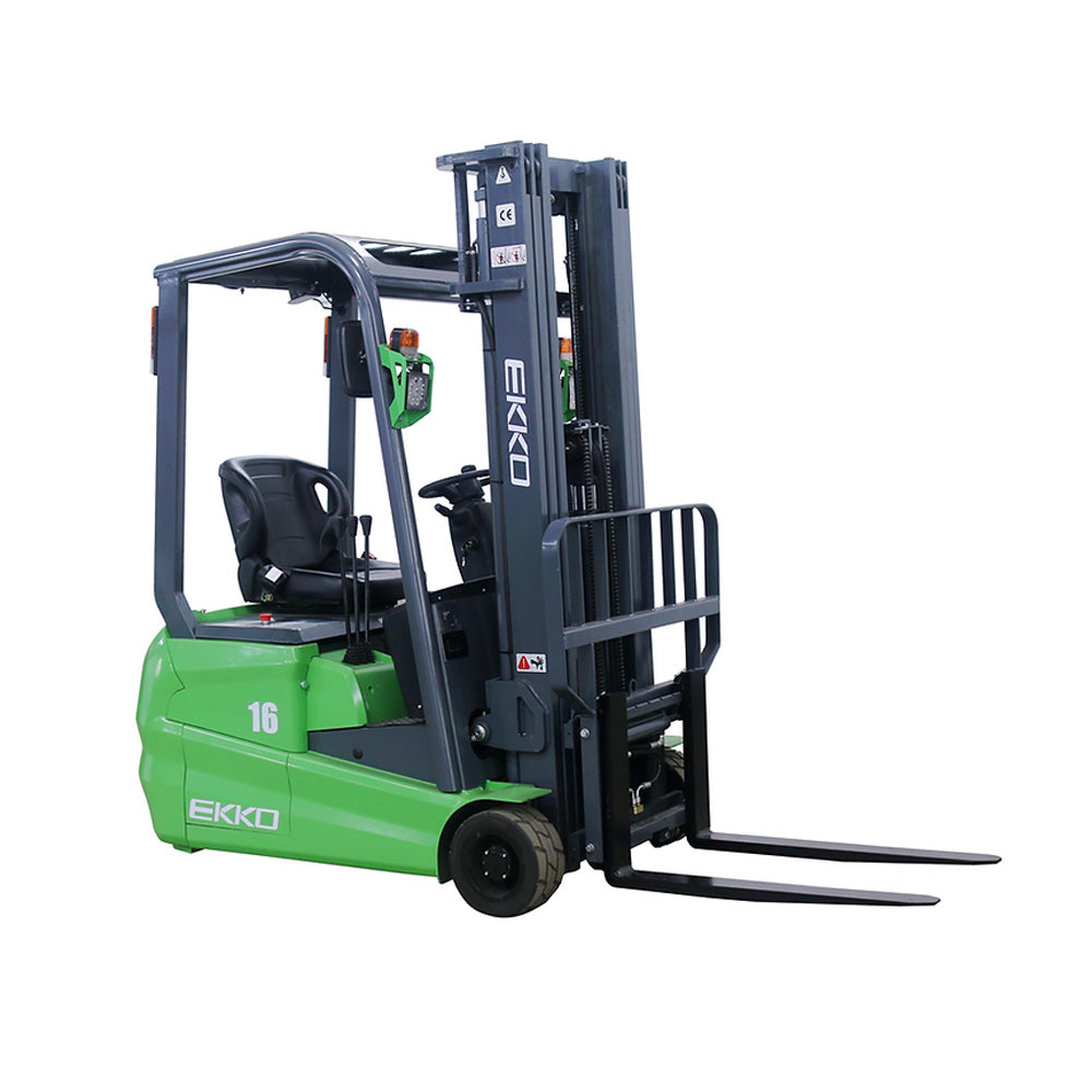 The EKKO EK16A-216Li 3-Wheel Lithium Forklift is designed for small aisles, limited spaces, and budget-friendly operations. It is ideal for loading and unloading trucks, loading docks, stock rooms, manufacturing floors, and warehouses.