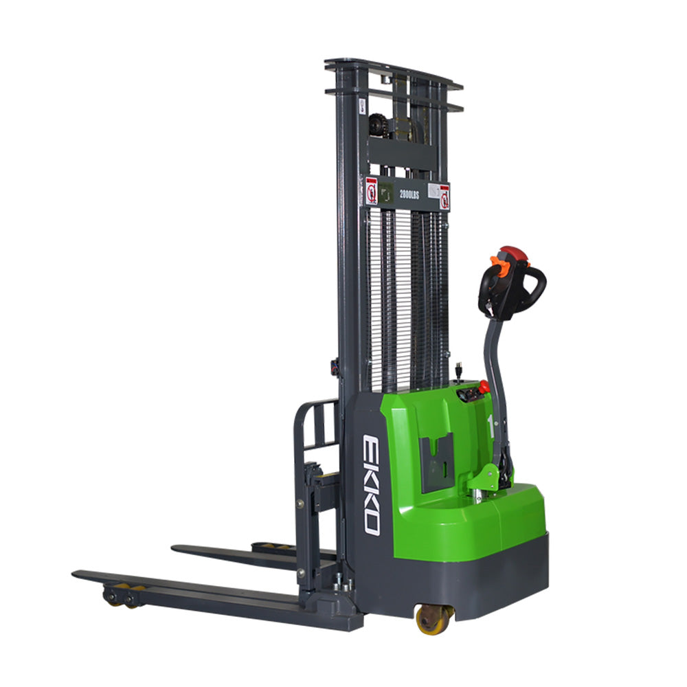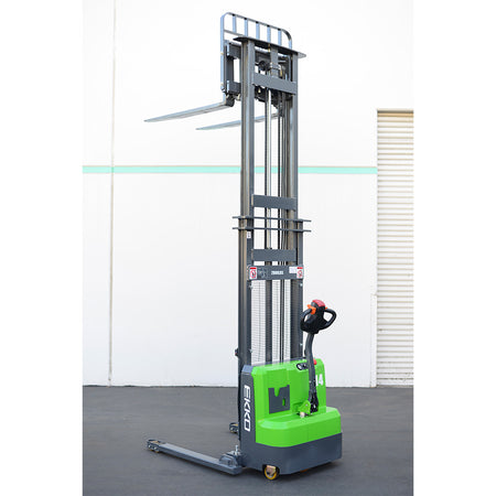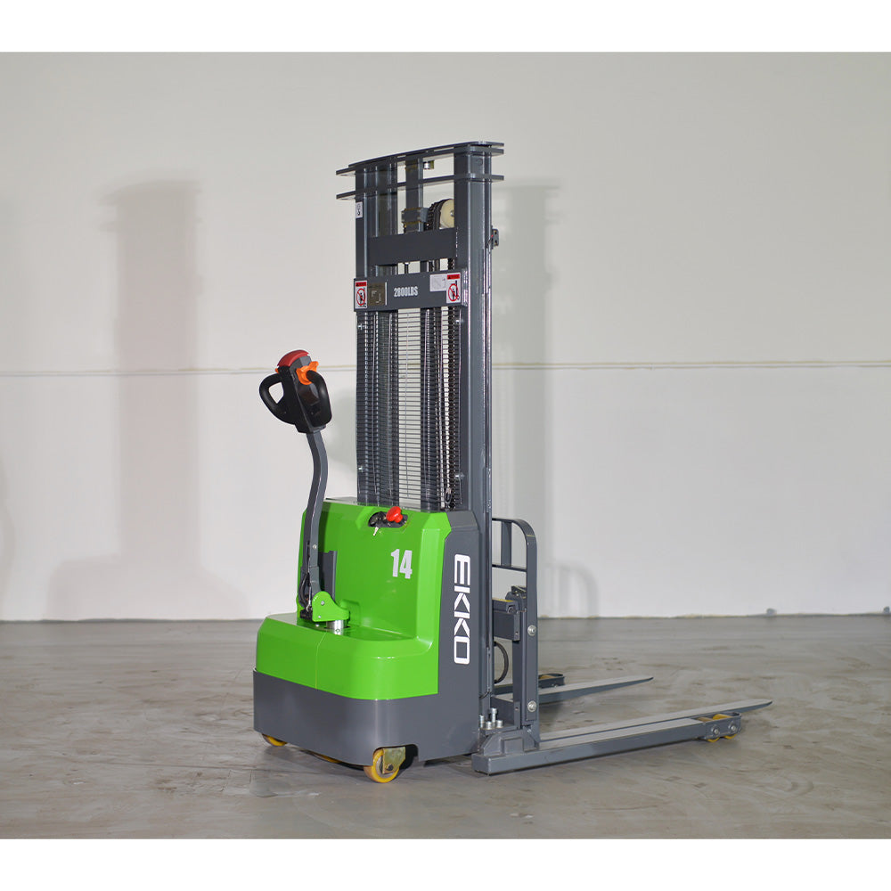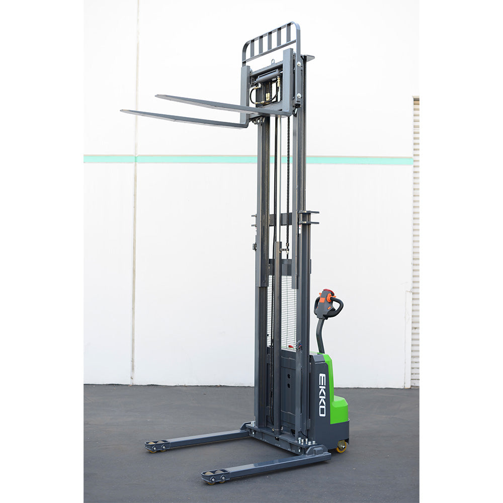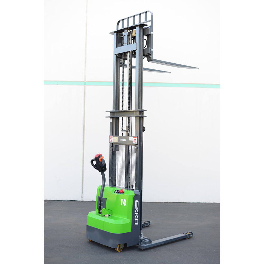 Introducing the EKKO EB14C-LI Electric Straddle Stacker, expertly combining the functionality of a forklift, reach truck, and walkie stacker. This high-performance stacker is essential for efficient operations in loading docks, warehouses, and industrial floors.
