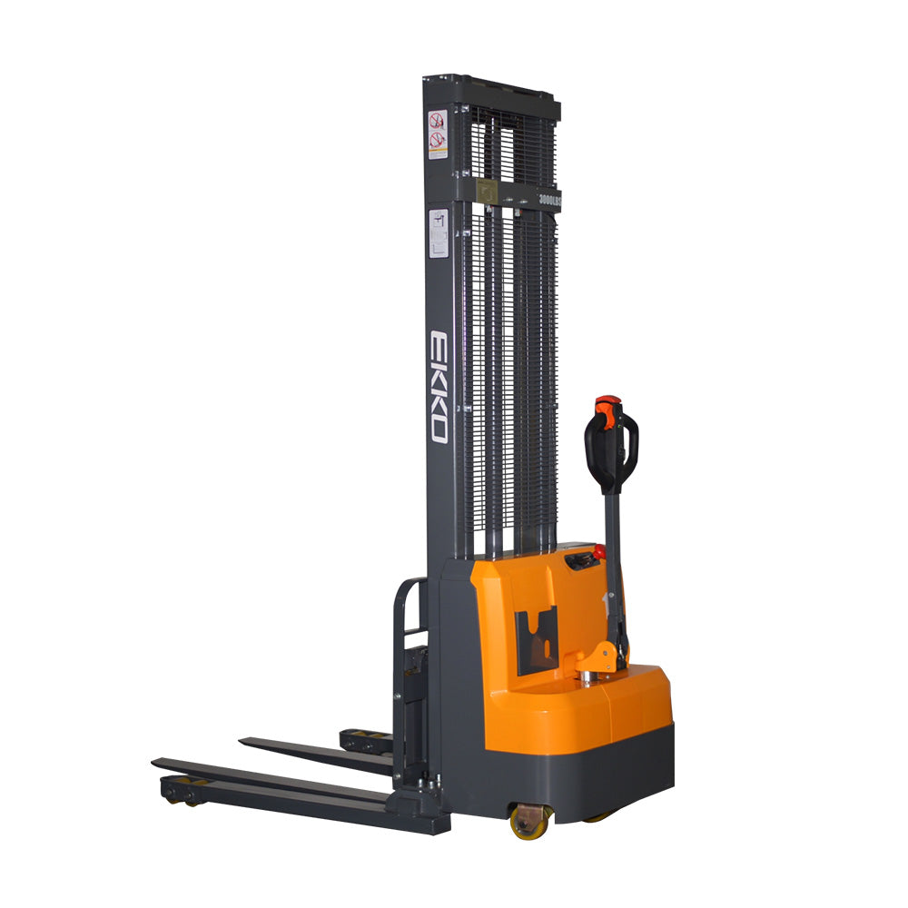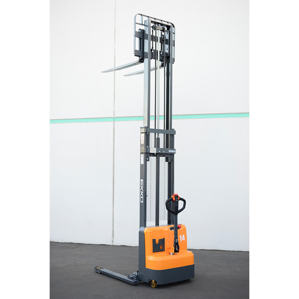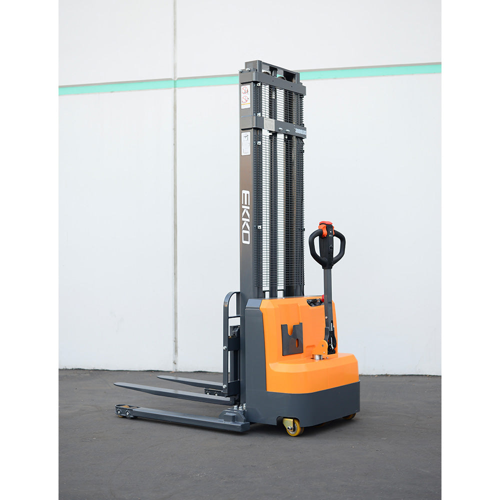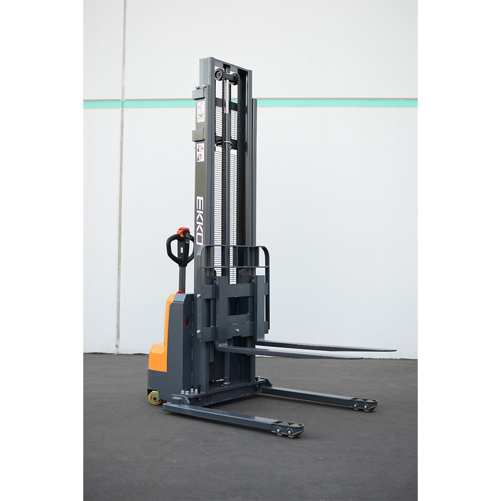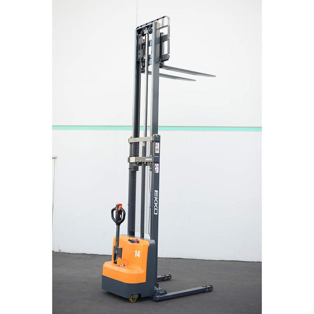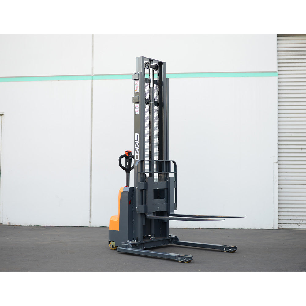 Enhance your material handling capabilities with the EKKO EB14C Electric Straddle Stacker, a perfect blend of a forklift, reach truck, and walkie stacker. This equipment is designed to efficiently handle tasks in loading docks, warehouses, and manufacturing environments.