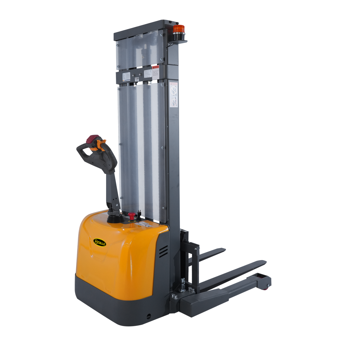 Equipped with a sophisticated display that monitors working hours, and battery levels, and provides low-voltage alerts, this stacker is built to perform. Its compact design features a turning radius of just 52.9 inches, making it ideal for tight aisles and confined spaces. The polyurethane wheels and 180° steering arc facilitate smooth and effortless movement, even under full load.