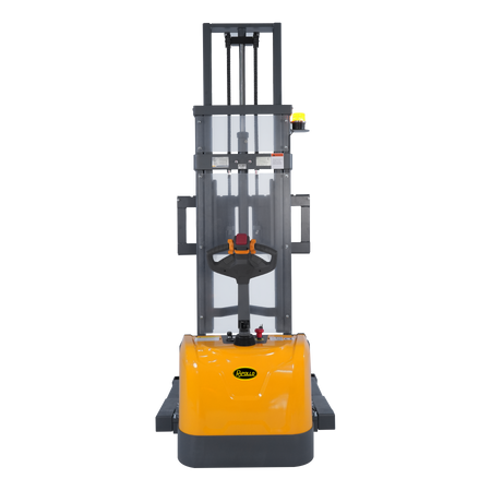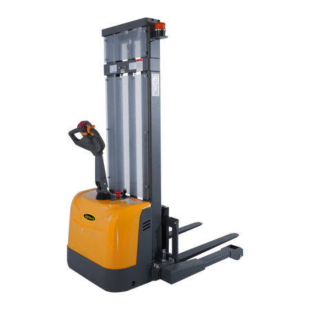 Optimize your warehouse operations with the Full Electric Walkie Stacker, Model A-3049, designed specifically for high efficiency and maneuverability in narrow spaces. Boasting a 3300 lbs capacity and a maximum lifting height of 130 inches, this stacker is the perfect solution for intensive stacking applications.