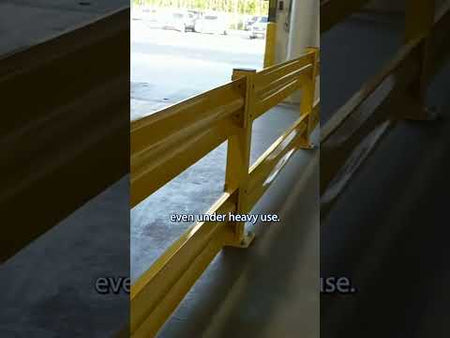 Handle-It Heavy Duty Warehouse Guard Rail Starter Unit comes with two guard rails and two post columns, Safety Barriers, and Forklift Guardrails tested to withstand 10,000 lbs. at 4 mph. Quick Ship stock in Milwaukee WI warehouse. Available 2 - 10 ft. Long x 43" Tall