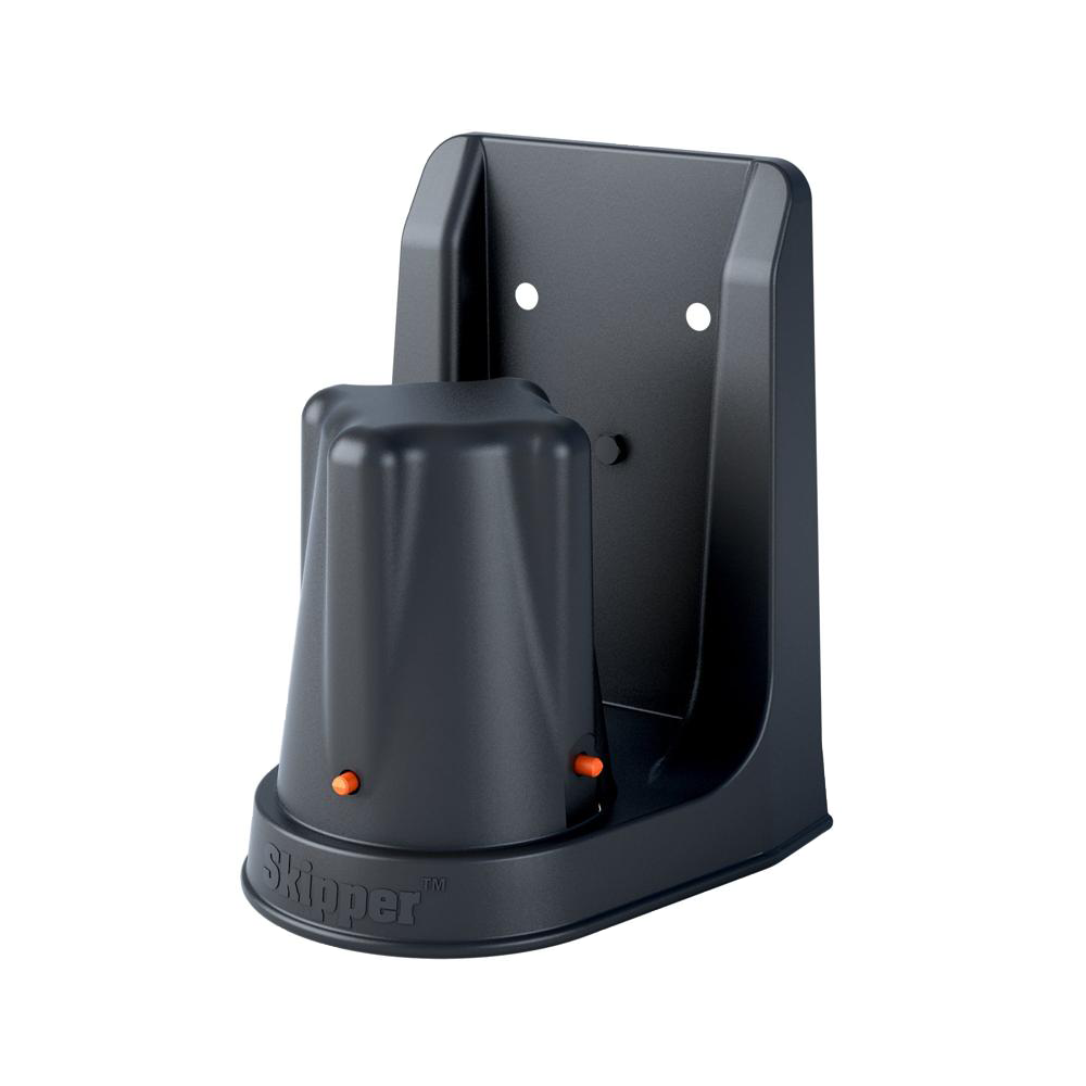 The magnetic support brackets hold the Skipper Unit in place without the need for posts. The non-marking magnetic version is perfect for attaching the bracket to vehicles and metal shelving. Simply place the bracket onto the desired metal surface, then click the Skipper Unit into place on the bracket (use the orange locking clip to locate into the four corresponding holes on the Skipper Unit).