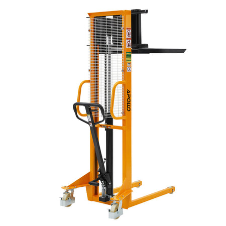 This manual pallet stacker is designed for efficient pallet stacking and positioning, as well as stocking and refilling shelves. With capacities ranging from 1100 lbs to 2200 lbs and a lifting height of 63", it offers a versatile solution for various material handling tasks.