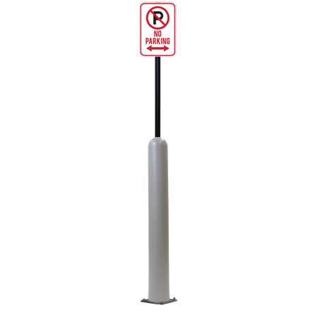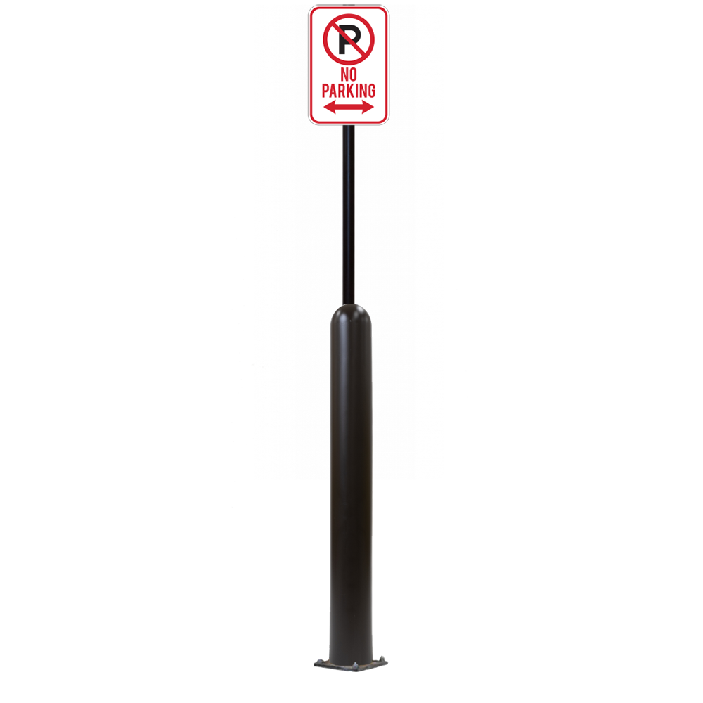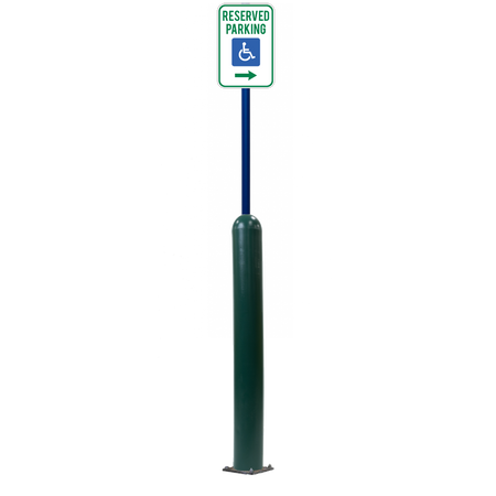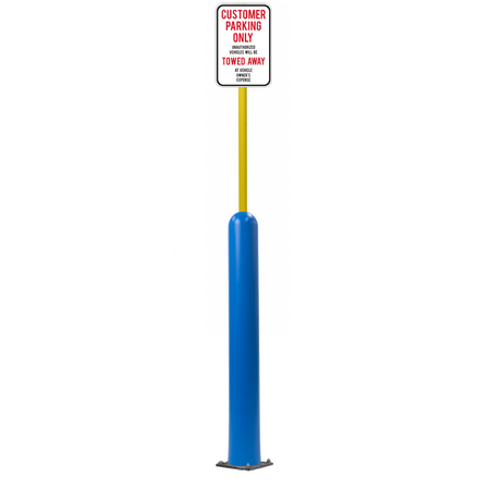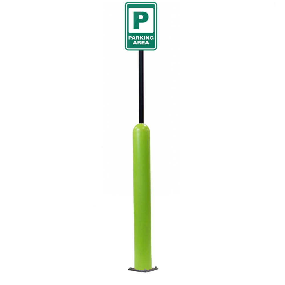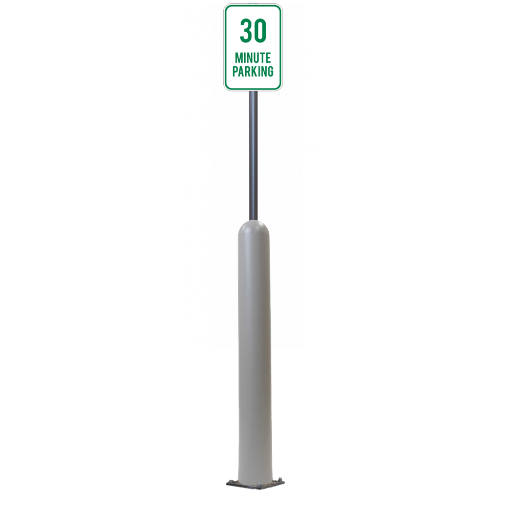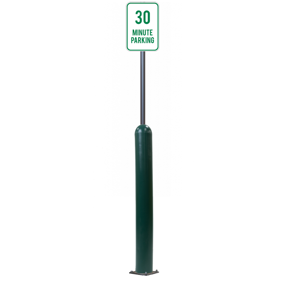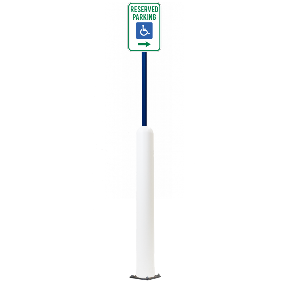Our Bollard Sign Systems are steel pipe bollard sign post systems that are sleeved in a Bollard Cover and fabricated to include a steel signpost. The full sign system is a great alternative to regular steel parking lot signs which require constant paint jobs and repairs.