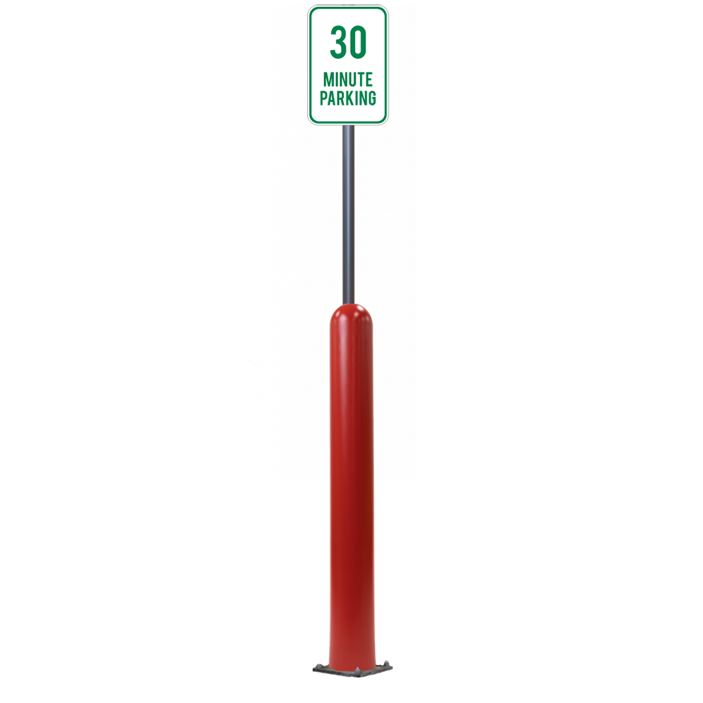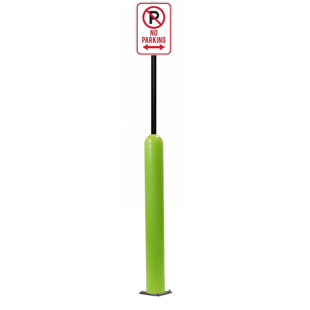 Have an exact size or installation need? Our Bollard Sign Systems are available in 4", 6", 8" diameter options, as well as either Base Plate or Core-In installation application. We also have a new Bounce Back system. Ask for more details!