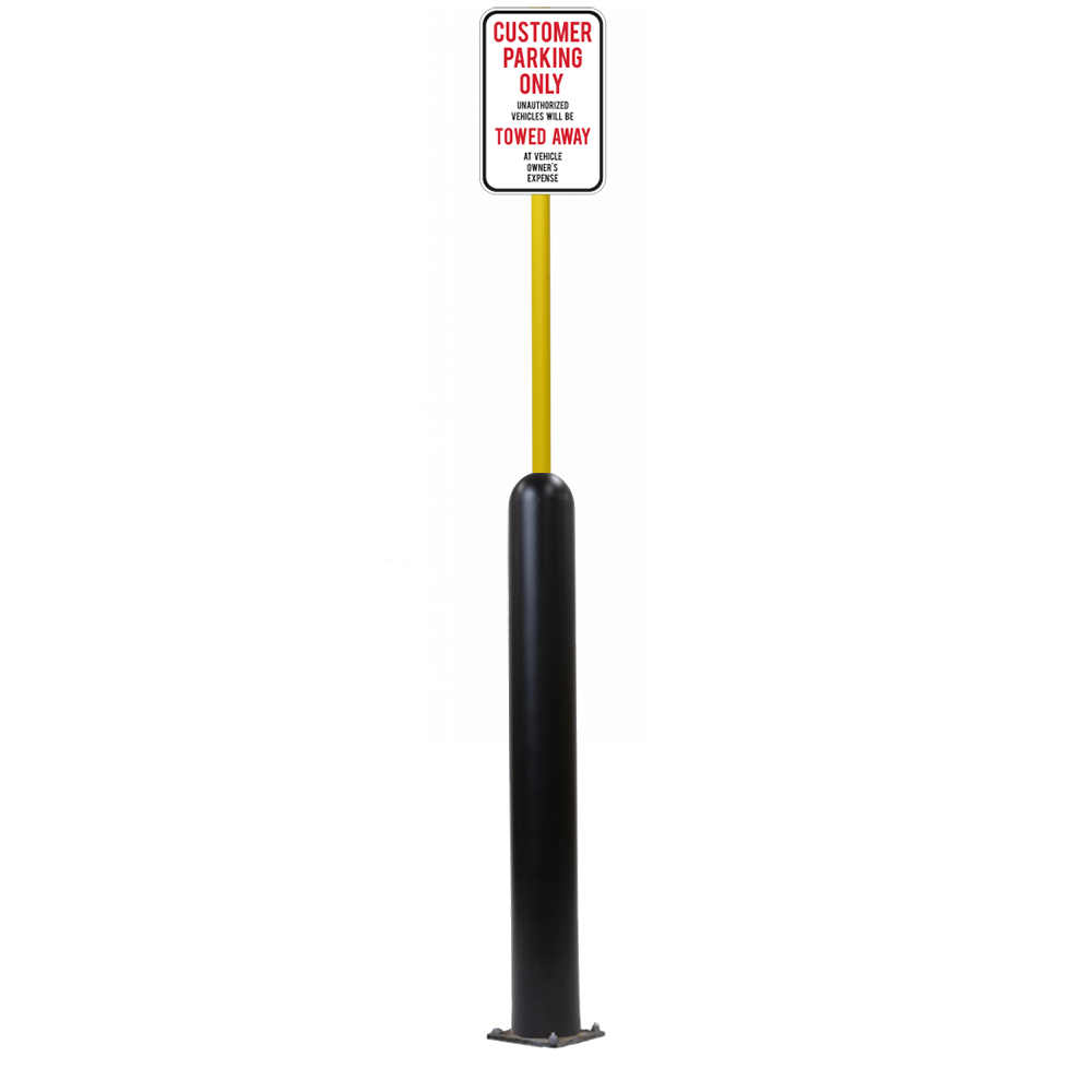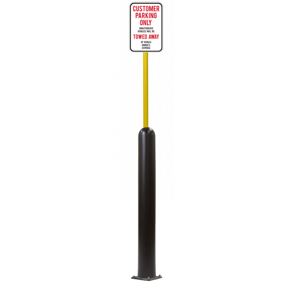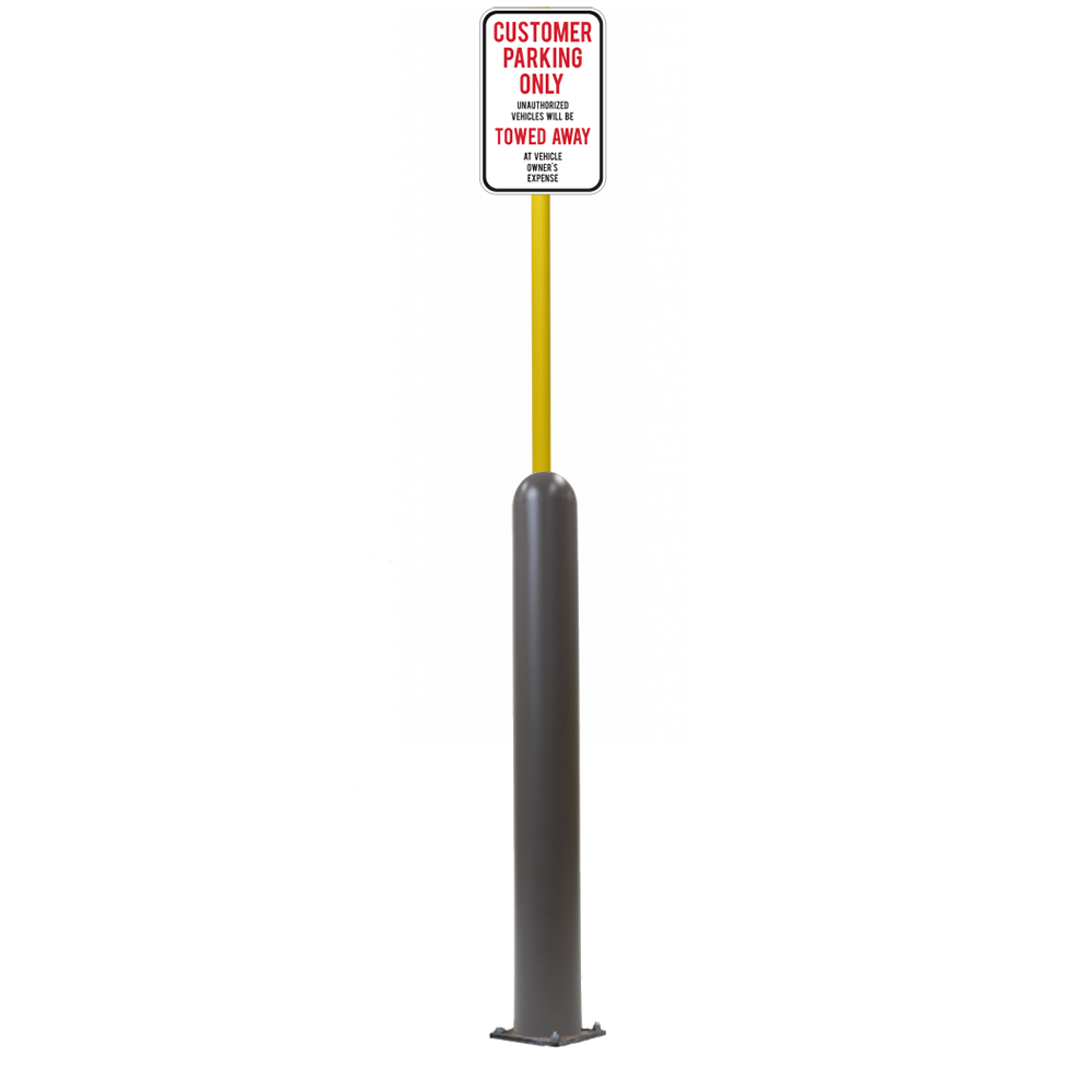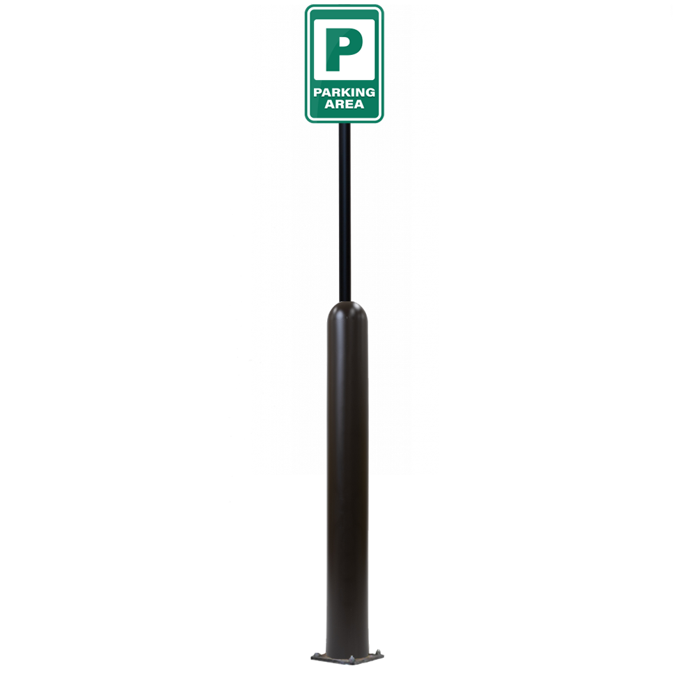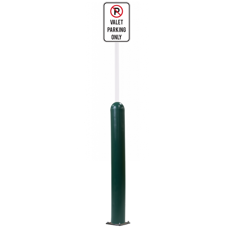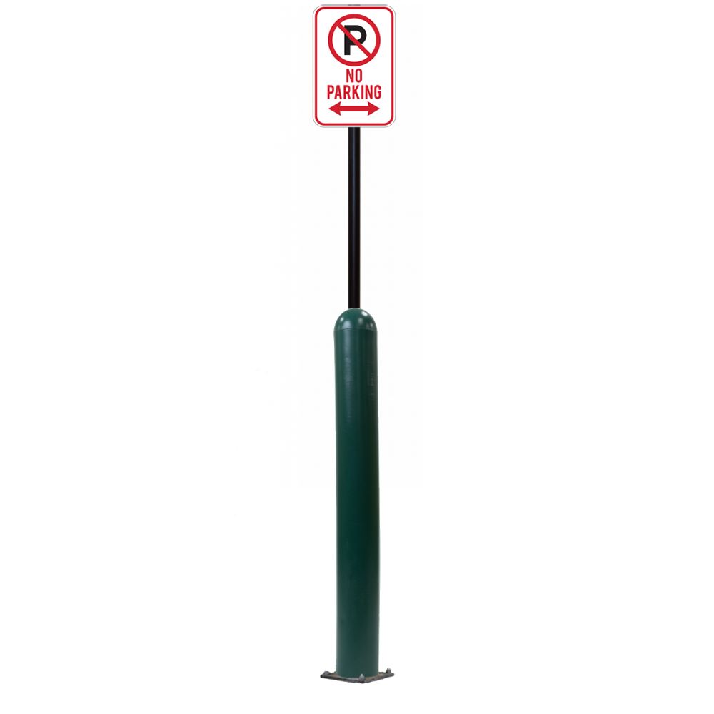 Our Bollard Sign Systems are steel pipe bollard sign post systems that are sleeved in a Bollard Cover and fabricated to include a steel signpost. The full sign system is a great alternative to regular steel parking lot signs which require constant paint jobs and repairs.