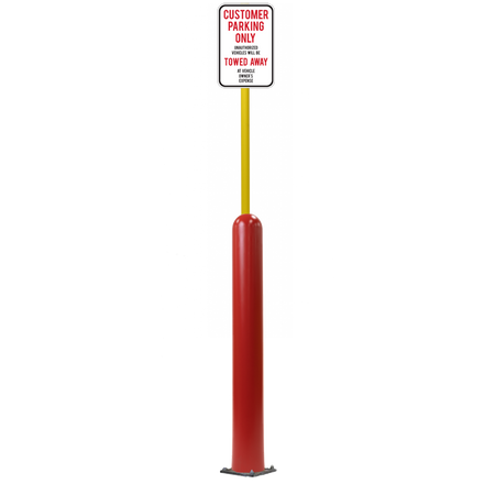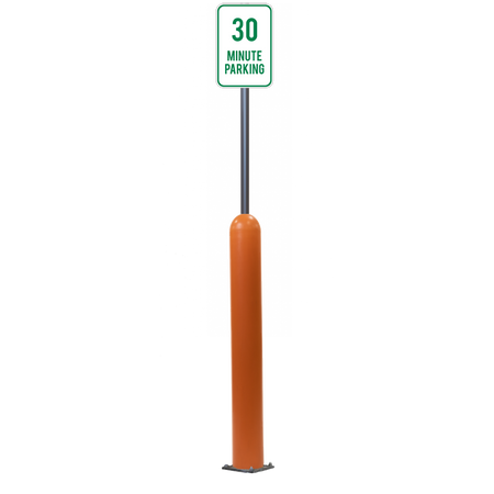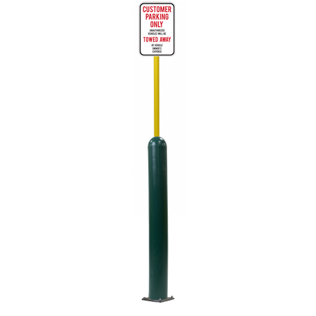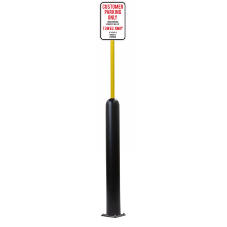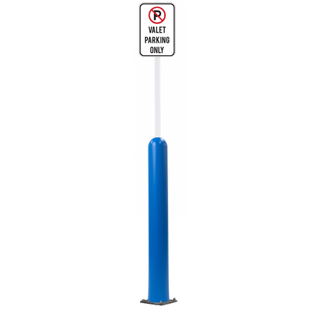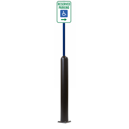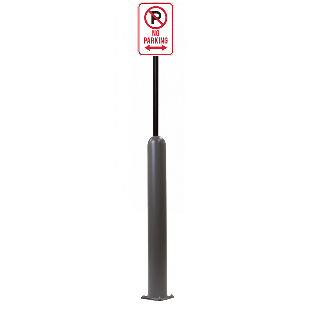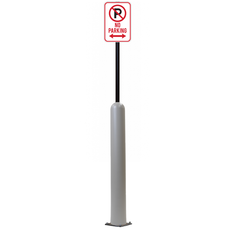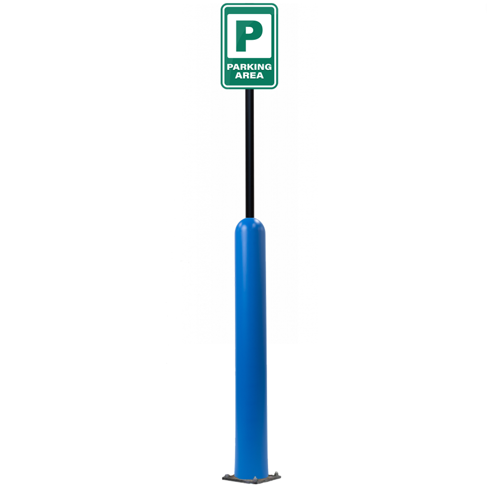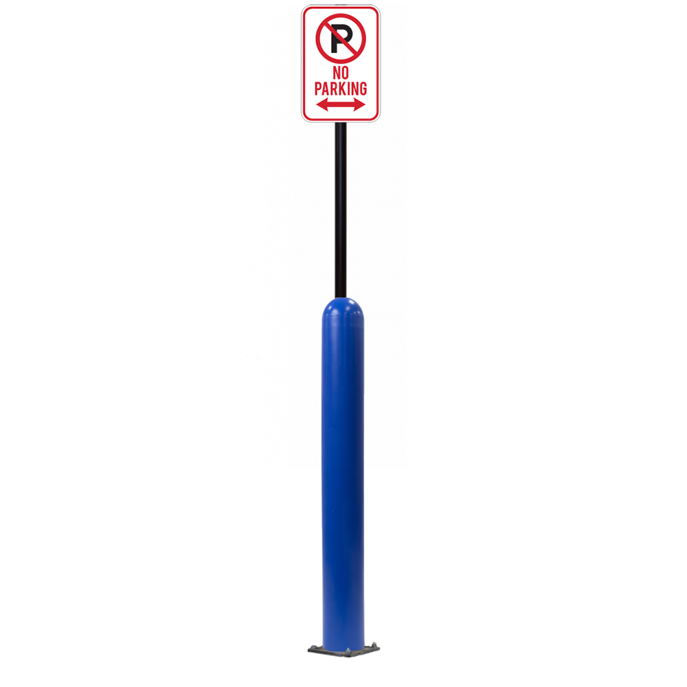 Our Bollard Sign Systems are steel pipe bollard sign post systems that are sleeved in a Bollard Cover and fabricated to include a steel signpost. The full sign system is a great alternative to regular steel parking lot signs which require constant paint jobs and repairs.