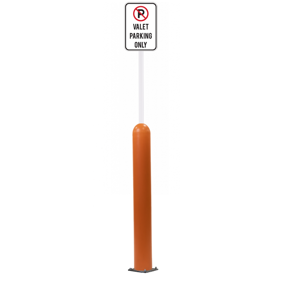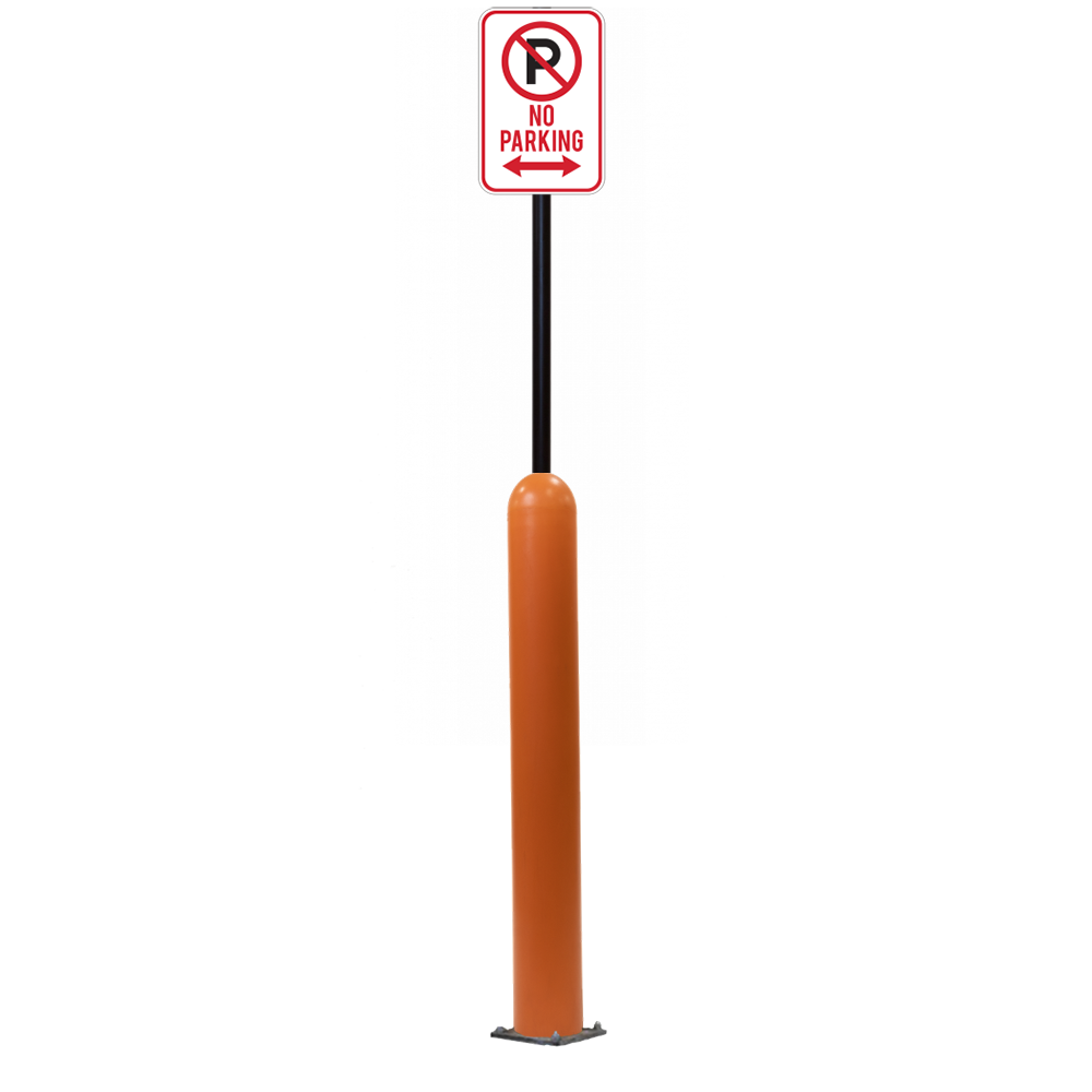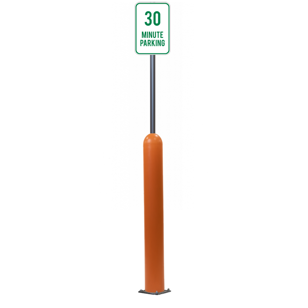 Have an exact size or installation need? Our Bollard Sign Systems are available in 4", 6", 8" diameter options, as well as either Base Plate or Core-In installation application. We also have a new Bounce Back system. Ask for more details!