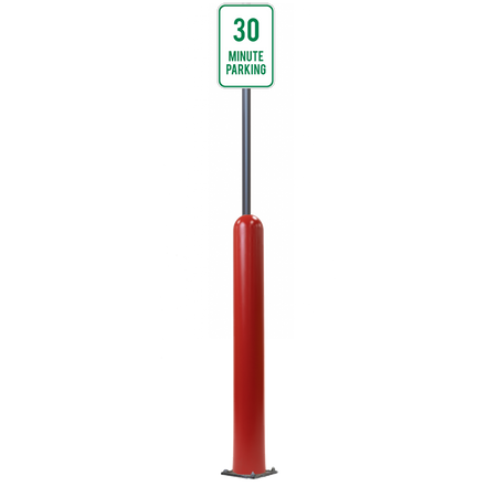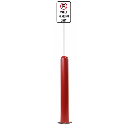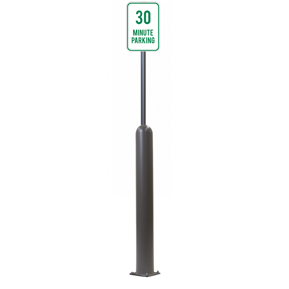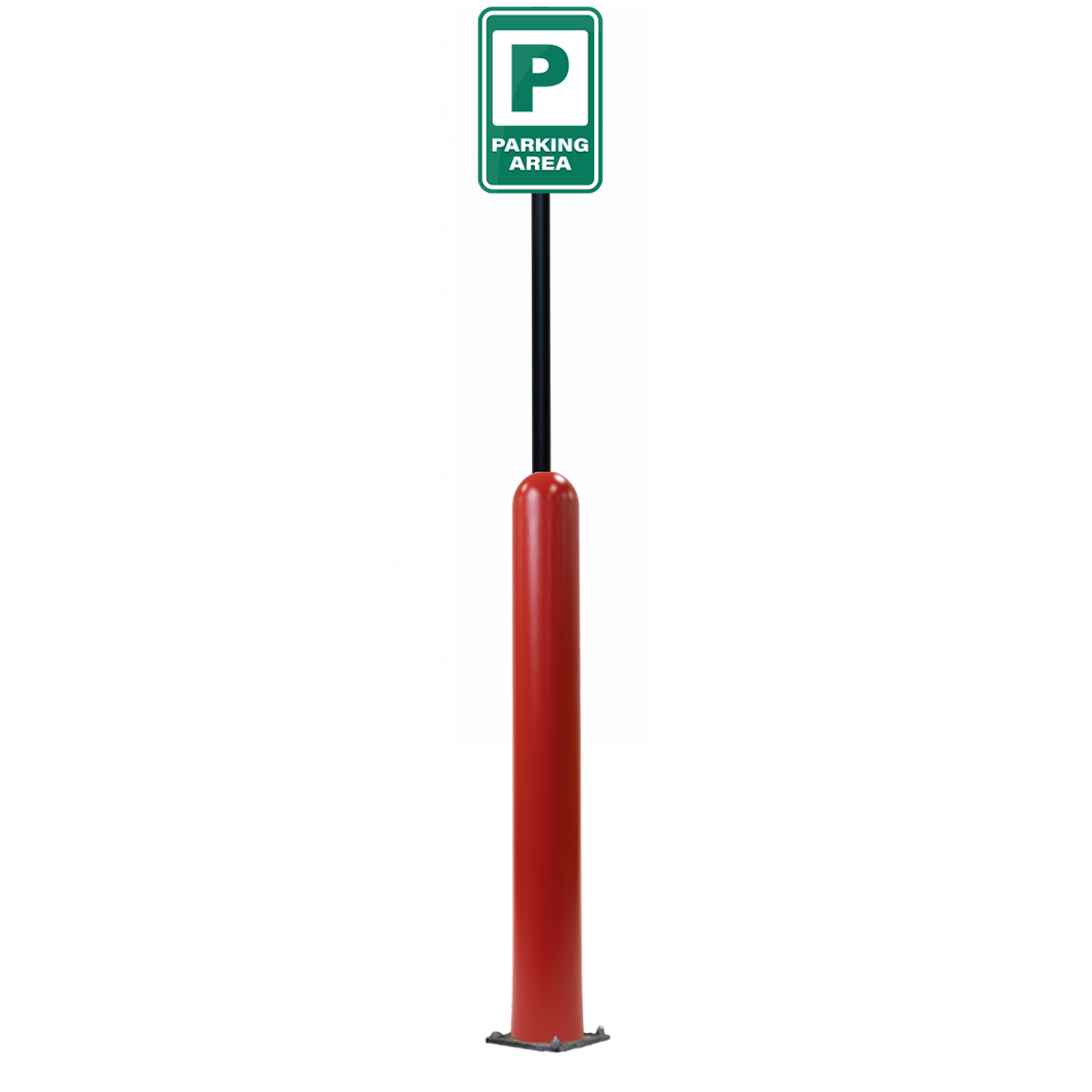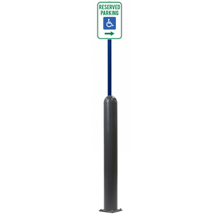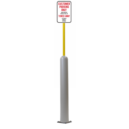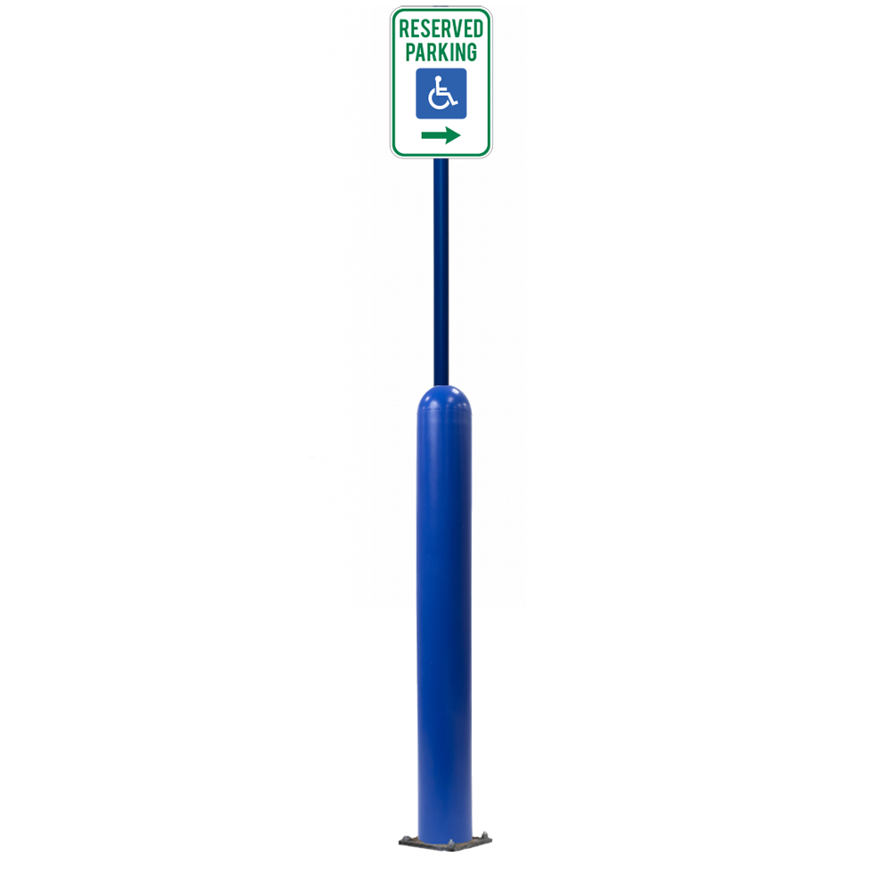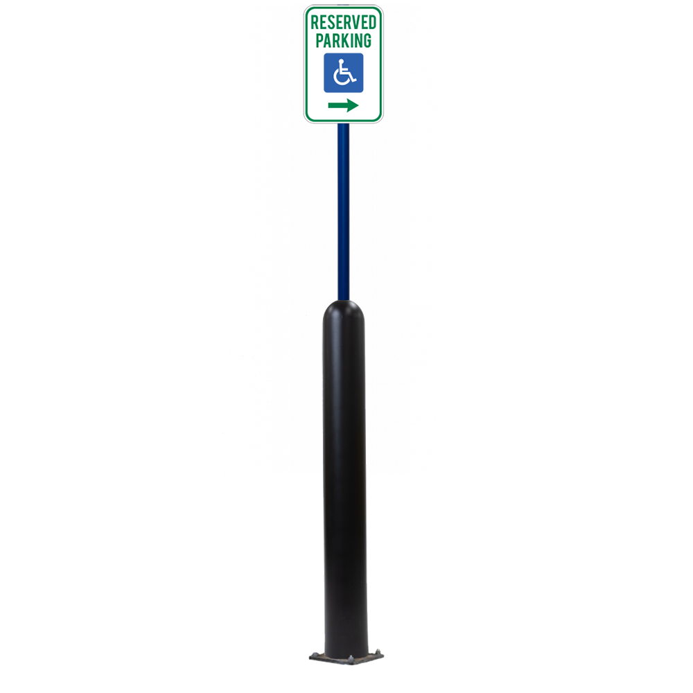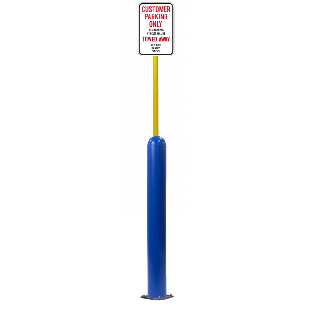 Bollard Sign Systems are steel pipe bollard sign post systems that are sleeved in a Bollard Cover and fabricated to include a steel signpost. The full sign system is a great alternative to regular steel parking lot signs which require constant paint jobs and repairs.