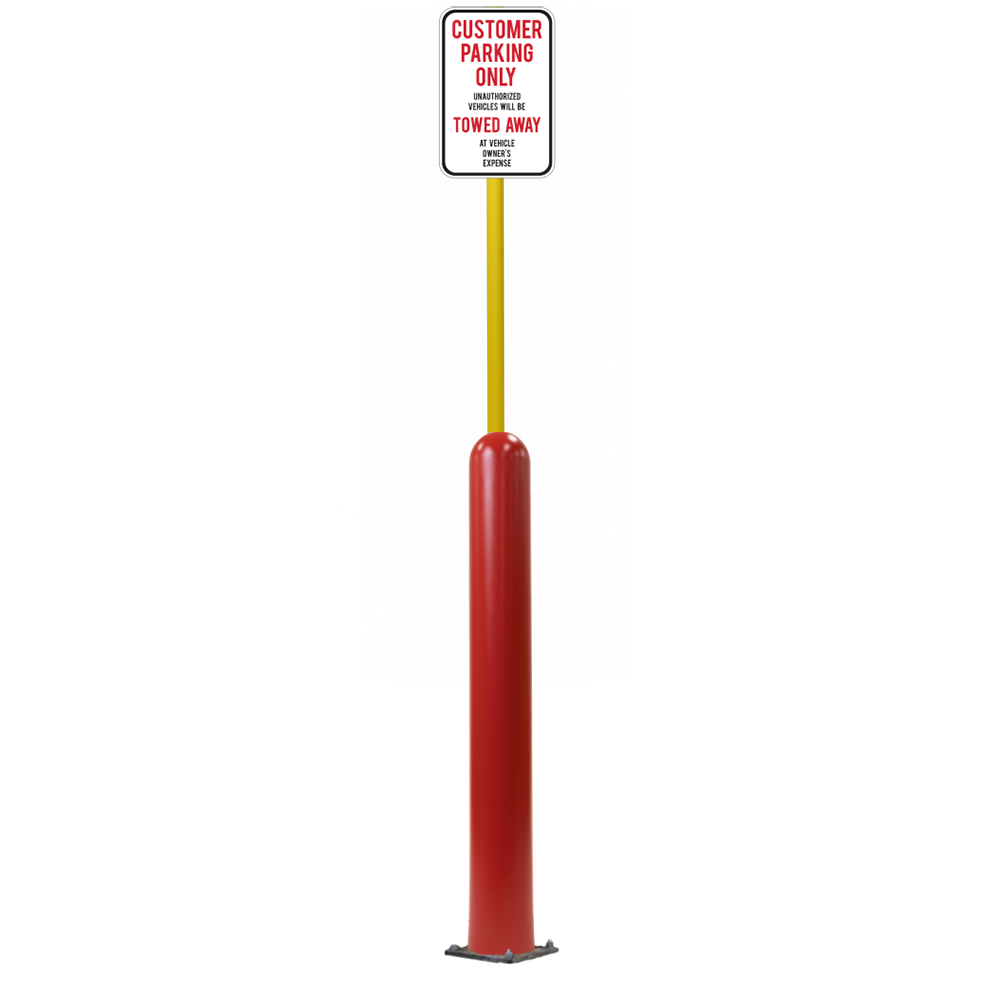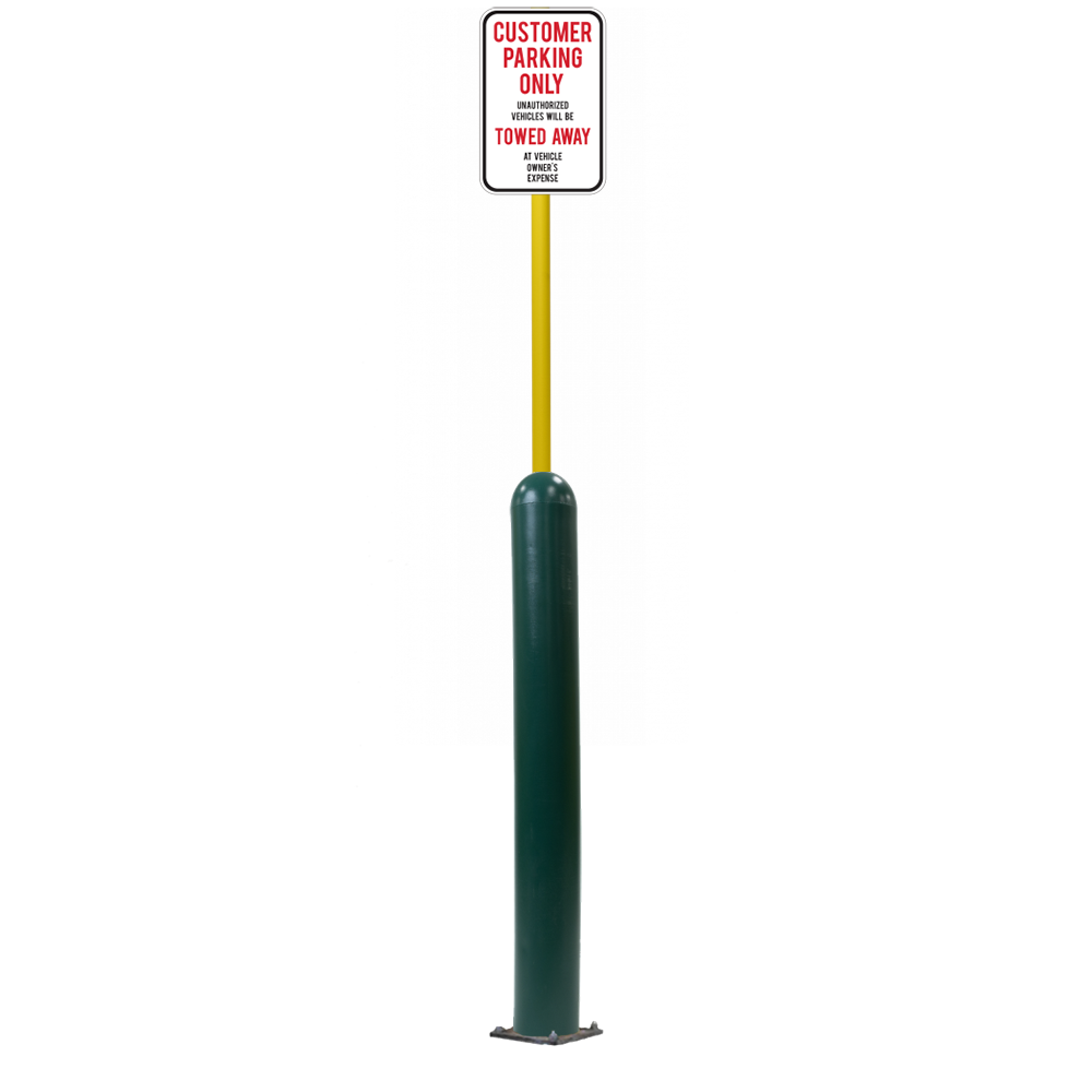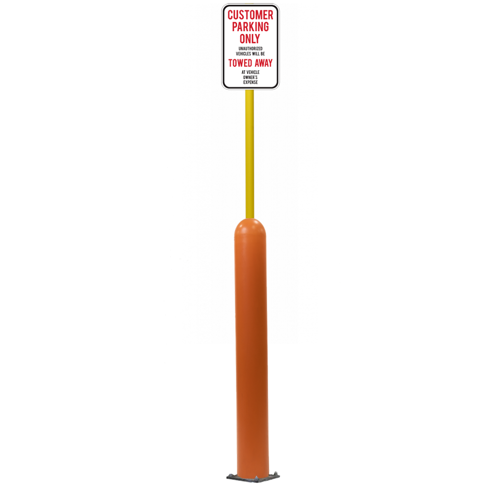 Have an exact size or installation need? Our Bollard Sign Systems are available in 4", 6", 8" diameter options, as well as either Base Plate or Core-In installation application. We also have a new Bounce Back system. Ask for more details!