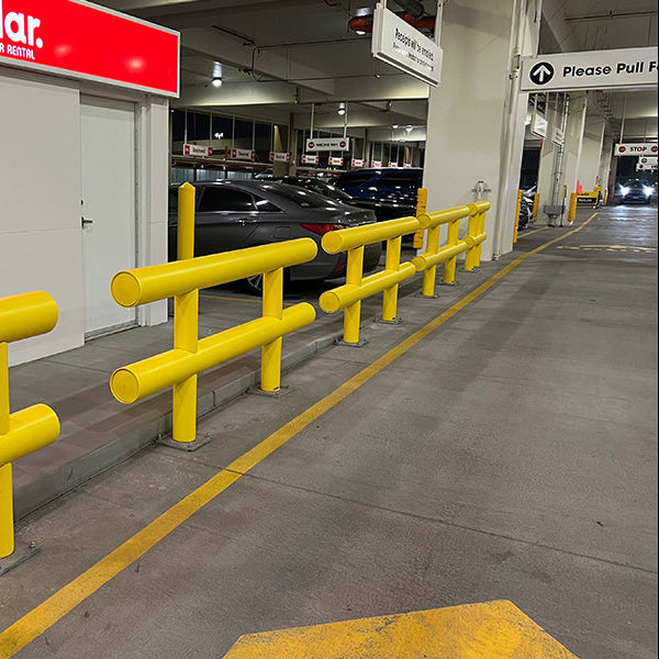 Available in multiple lengths and heights, steel guardrail is sleeved in a durable HDPE plastic and available in both one line and two line options. Thanks to the plastic sleeves, the safety guardrails require virtually no maintenance or painting. This feature means you will be able to save money on both possible accidents and maintenance fees throughout the life of the product.