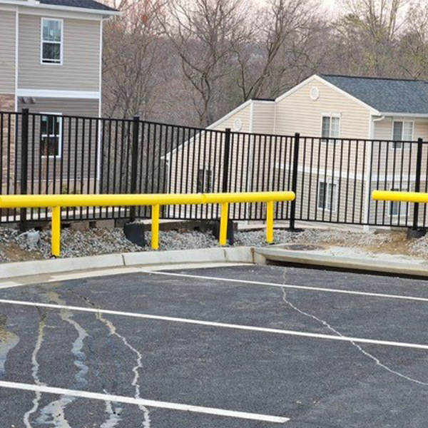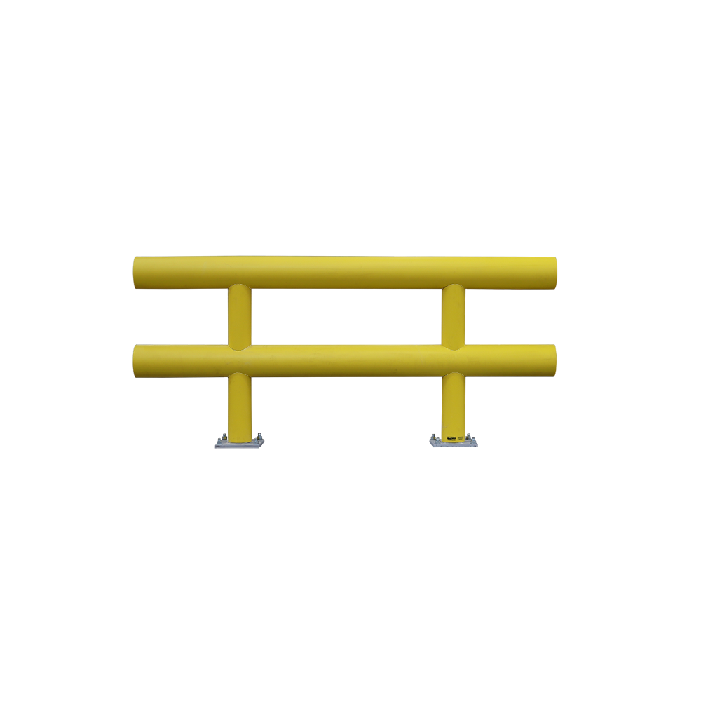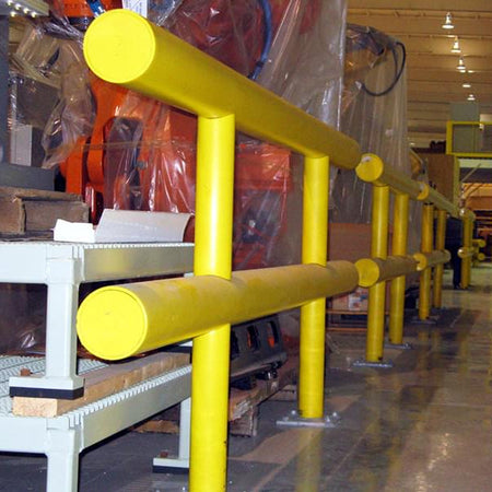 Our Standard Guardrail Systems are built with 4" schedule 40 steel pipe rails & 2 1/2" schedule 80 steel pipe posts. The systems are available in both one or two-line rails and are sleeved in a durable HDPE plastic, which will eliminate the need for painting and maintenance. This means that you'll be saving money on time and labor whenever accidents happen in your facilities.