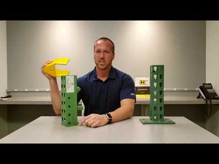 Made to protect the base of pallet rack and boltless shelving uprights. Can be anchored with a single 1/2" anchor which adds extra strength and stability increasing the base of the upright.