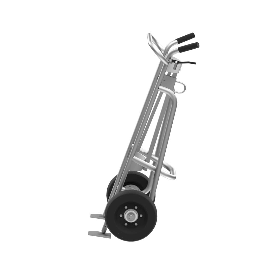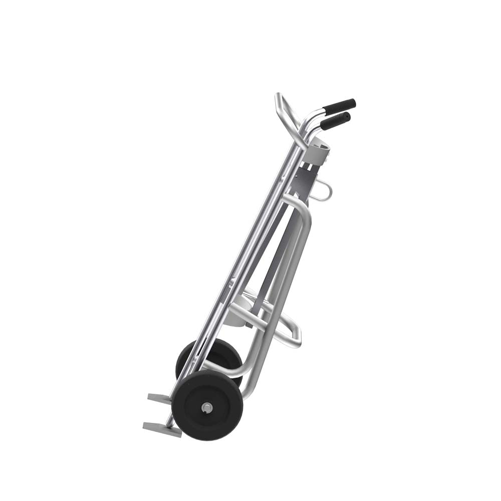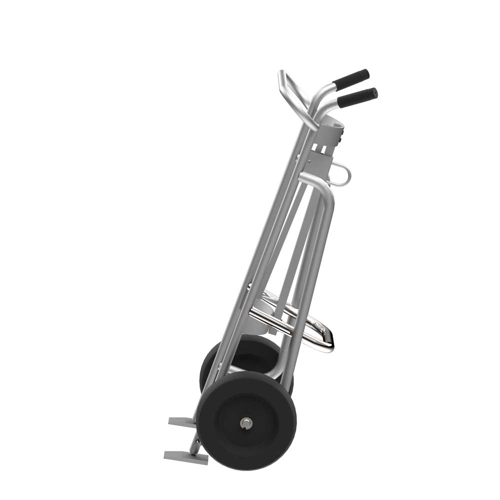 This hand truck is available in a steel or aluminum frame. Heavy 14 gauge steel frames can handle the toughest, most rigorous use and environments. Aluminum frames are lightweight making them easier to maneuver, and are spark resistant which is required for certain environments. 2 or 4-wheel options are available in pneumatic, solid rubber, or mold-on rubber. (2) 12" pneumatic wheels make handling heavy loads or maneuvering over various terrain simple. The (2) 10" solid rubber wheels provide premium durability and simplified handling of heavy loads. (2) 10" mold-on rubber wheels are recommended for flat indoor environments and are maintenance-free. 4-wheel models include the additional (2) 6" rear poly wheels for improved stability and control. 1" steel axles are fully enclosed in a protective housing with sealed bearings to improve the durability, functionality, and longevity of your unit.