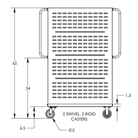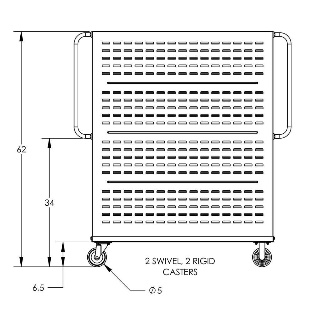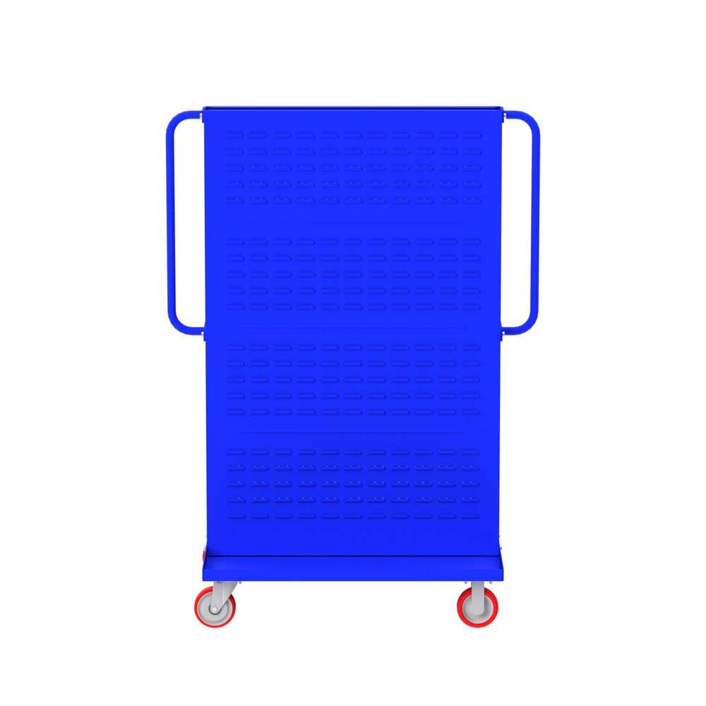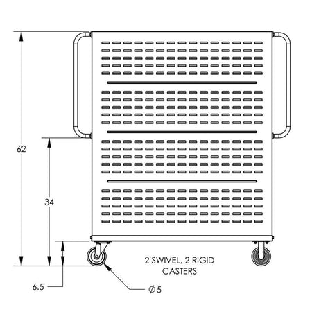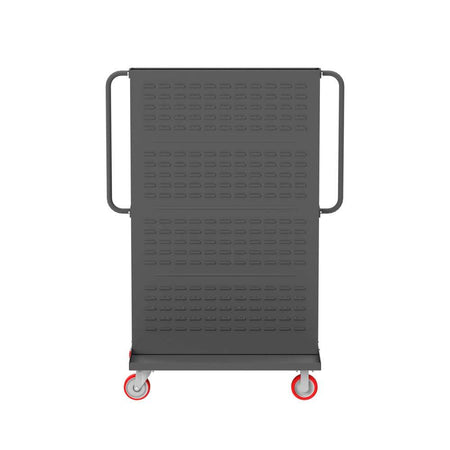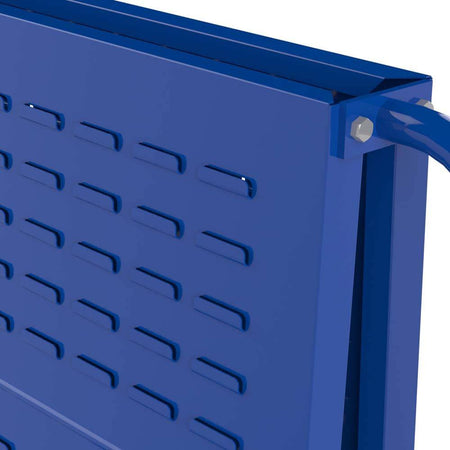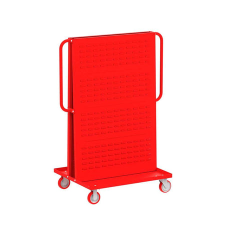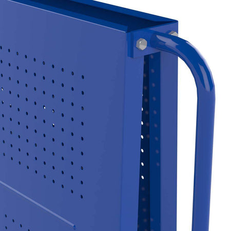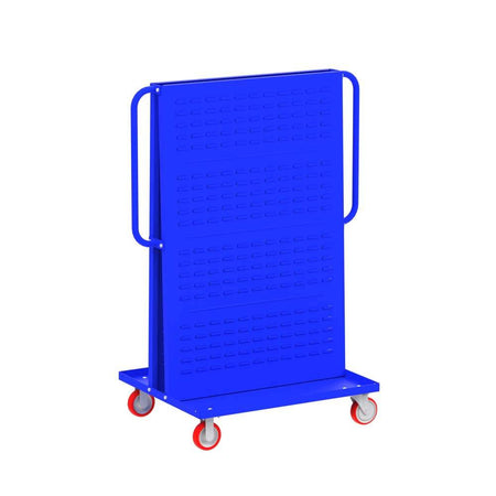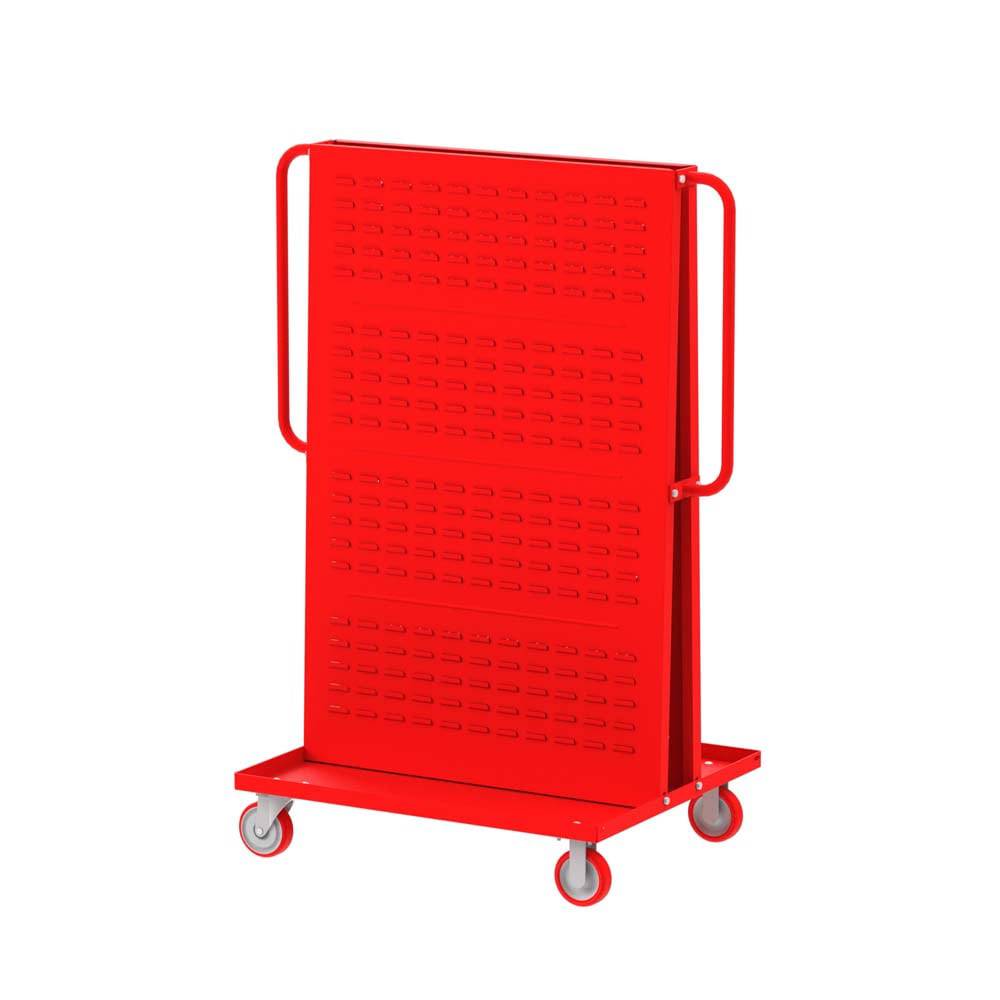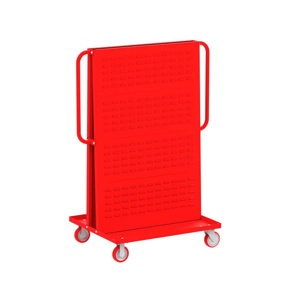 These heavy-duty 12 gauge base carts are complete with dual-sided functionality from (2) 18 gauge panels, offered in pegboard or louvered options. Pegboard panels are used with standard circle pegboard hooks, and louvered panels are used with hanging plastic storage bins. These dual-sided a-frame carts are offered in a variety of panel options to fit your needs including (2) louvered panels, (2) pegboard panels, or (1) louvered panel / (1) pegboard panel. Complete your unit with a variety of optional accessories (sold separately).