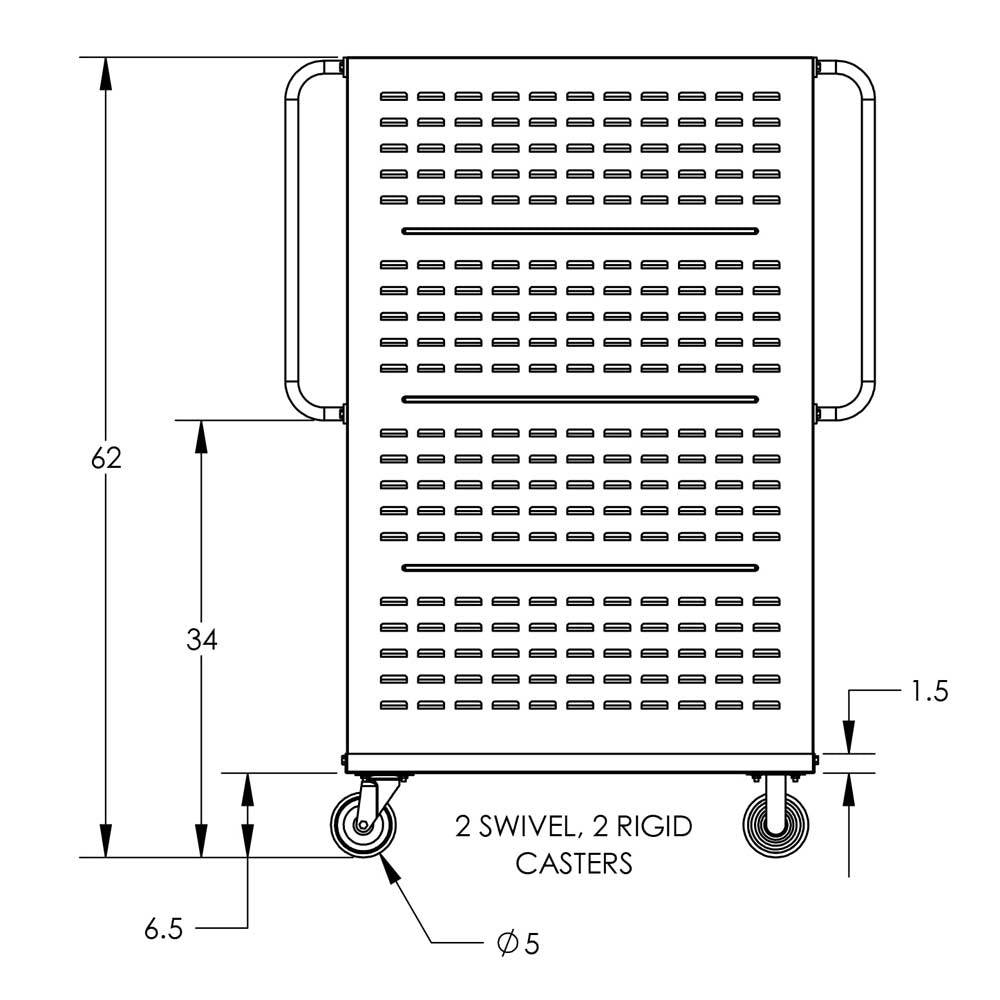 • 5-inch non-marking heavy-duty phenolic casters: 2 rigid, 2 locking swivel.